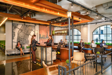 Dengan tema ala kota New York, Uptown juga mengadopsi suasana Central Park pada lobby area agar memberi kesan lebih segar, teduh dan nyaman untuk bekerja sambil berinteraksi. Lalu ambience ala daerah Upper Manhattan juga diperlihatkan pada area kerja; hal tersebut terlihat dari pilihan interior yang minimalis dan sedikit sentuhan artsy, yang membuat tampilan ruang kerja Uptown lebih dinamis.