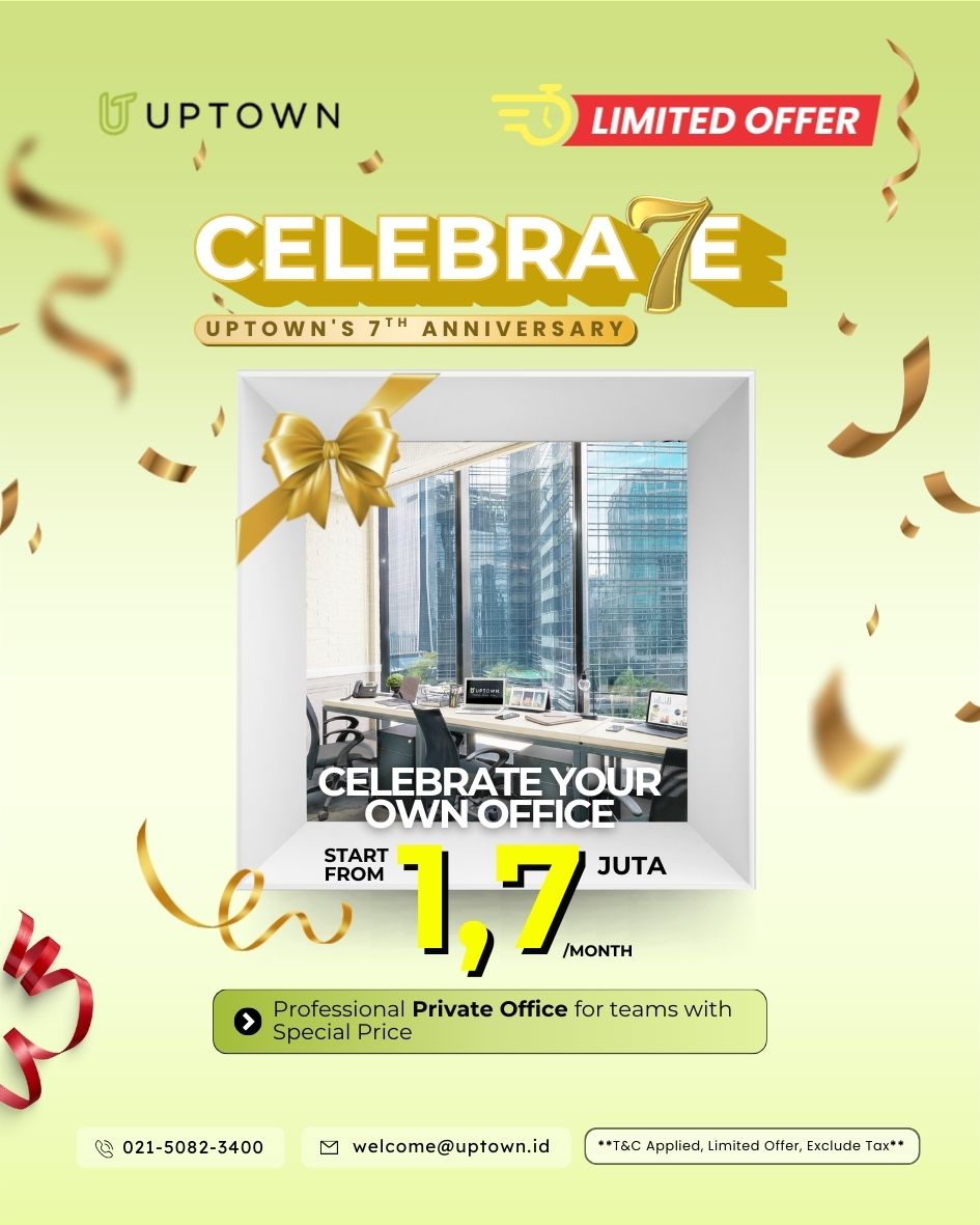 For our 7th Anniversary, UPTOWN offers a Special Price for our Private Offices, starting from IDR 1.7 Million/month! This is the ideal solution for teams that require privacy, security, and strong corporate branding. What You Get: